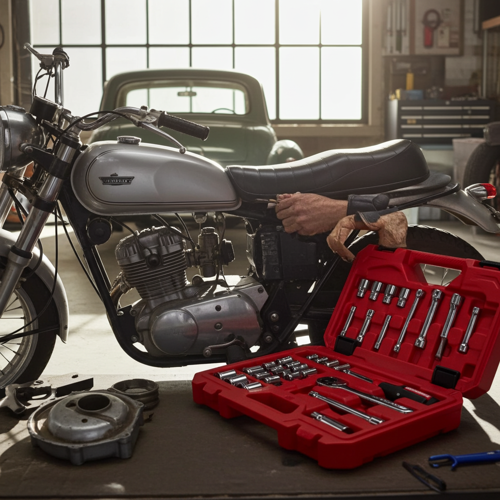 El juego de herramientas mecánicas de 61 piezas con entrada de 3/8" está equipado con una carraca de perfil bajo de 72 dientes con entrada de 3/8" con un arco de giro de 5° y una cabeza hasta un 25 % más delgada* que ayuda a proporcionar un mayor acceso en espacios reducidos. Incluye una amplia variedad de dados de 6 puntas y herramientas de entrada en un duradero estuche moldeado por soplado. El estuche está fabricado con bisagras metálicas y diseñado para caber en las cajas de almacenamiento metálicas CRAFTSMAN para una fácil organización. Perfecto como complemento a su colección de herramientas actual o como juego de inicio